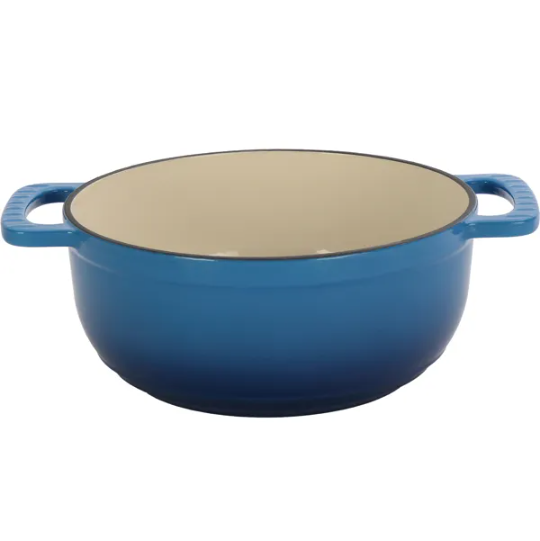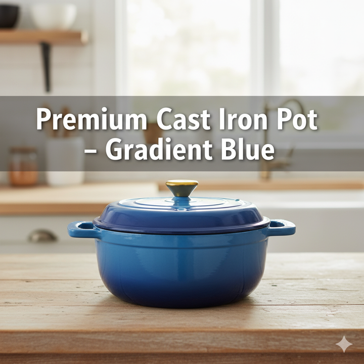 Gradient Blue Cast Iron Cooking Pot 6QT with Enamel Finish & Gloves